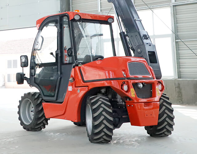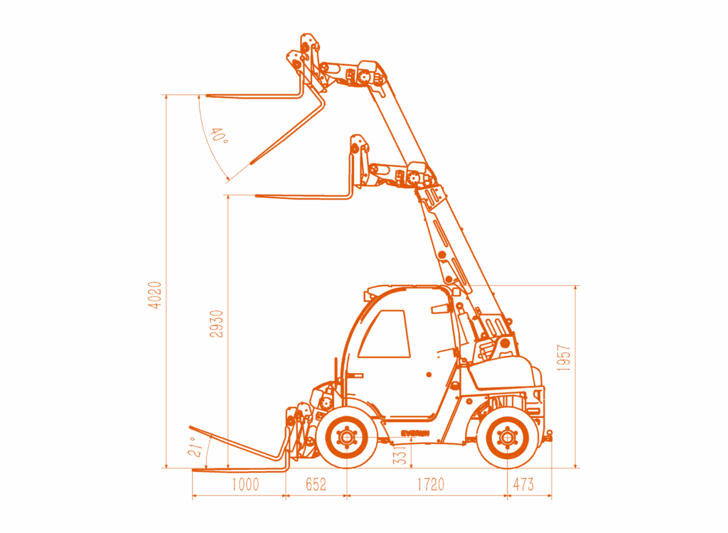 Dank der Hinterradlenkung und des durchgehenden Fahrgestells sind Everun-Teleskoplader besonders wendig und sehr stabil. Der niedrige Schwerpunkt der Maschine unterstützt die Stabilität zusätzlich.