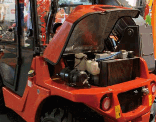 Die Motorhaube lässt sich mit wenigen Handgriffen einfach öffnen und abnehmen, um regelmäßige Service- und Wartungsarbeiten durchzuführen. Der Hydraulikölbehälter, der Luftfilter, die Motoröl-Einfüllöffnung, der Ölmessstab und das Kühlwasser sind dadurch schnell und unkompliziert zugänglich – ein echter Komfortgewinn.